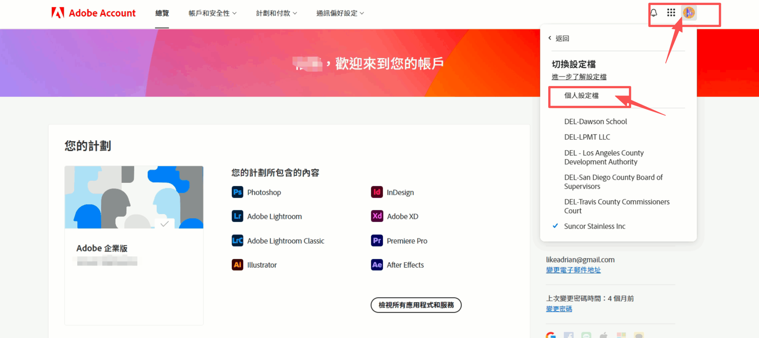 1、打開Creative Cloud App (電腦桌面版),右上角登出賬號,再登入。 2、重新登入後選擇最新的組織進去就可以用了。設定好後,請繼續把之前的舊組織退出,下次更新切換組織的時候您便可直接知道是哪個組織。從而進行快速切換恢復使用!