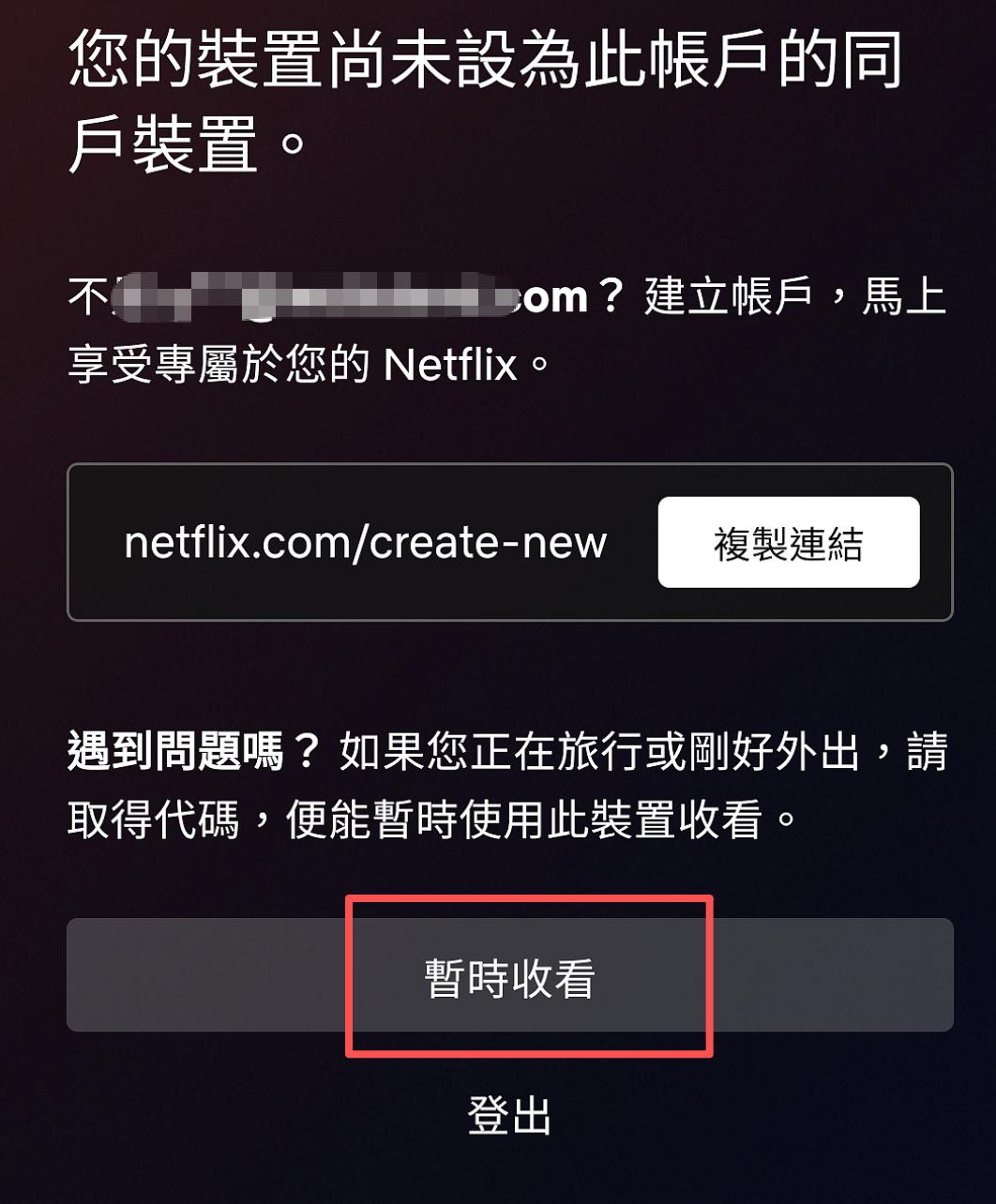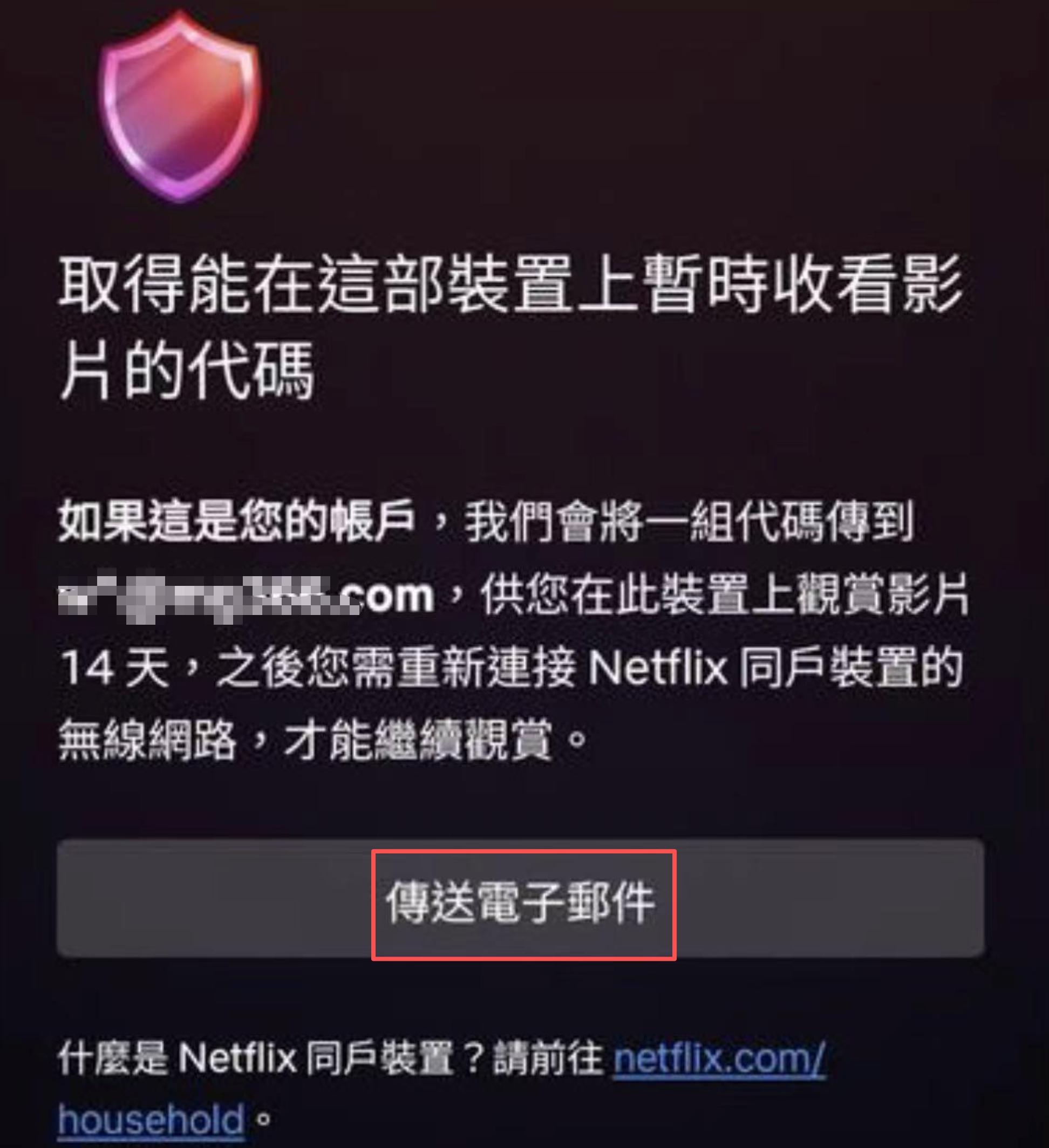 (3)若僅有(更新Netflix同戶驗證)的按鈕,就點擊更新Netflix同戶驗證。然後在驗證系統中選擇取得同戶驗證郵件。